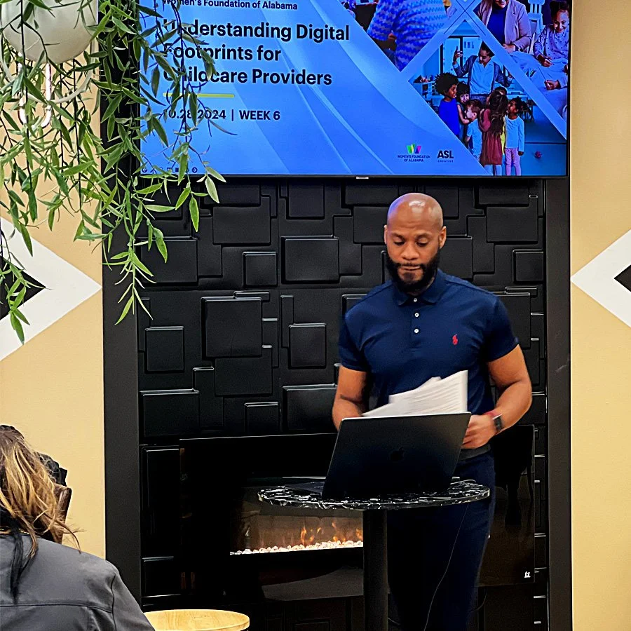 In addition to providing evaluation support, WFA and ASL sought to leverage my expertise as a web designer and marketer to provide instructional materials and in-person class facilitation on Understanding Your Digital Footprint. This comprehensive lesson provides insight into how online behavior, digital presence, and digital marketing can influence the success and reputation of childcare businesses, as well as communication with parents and communities.